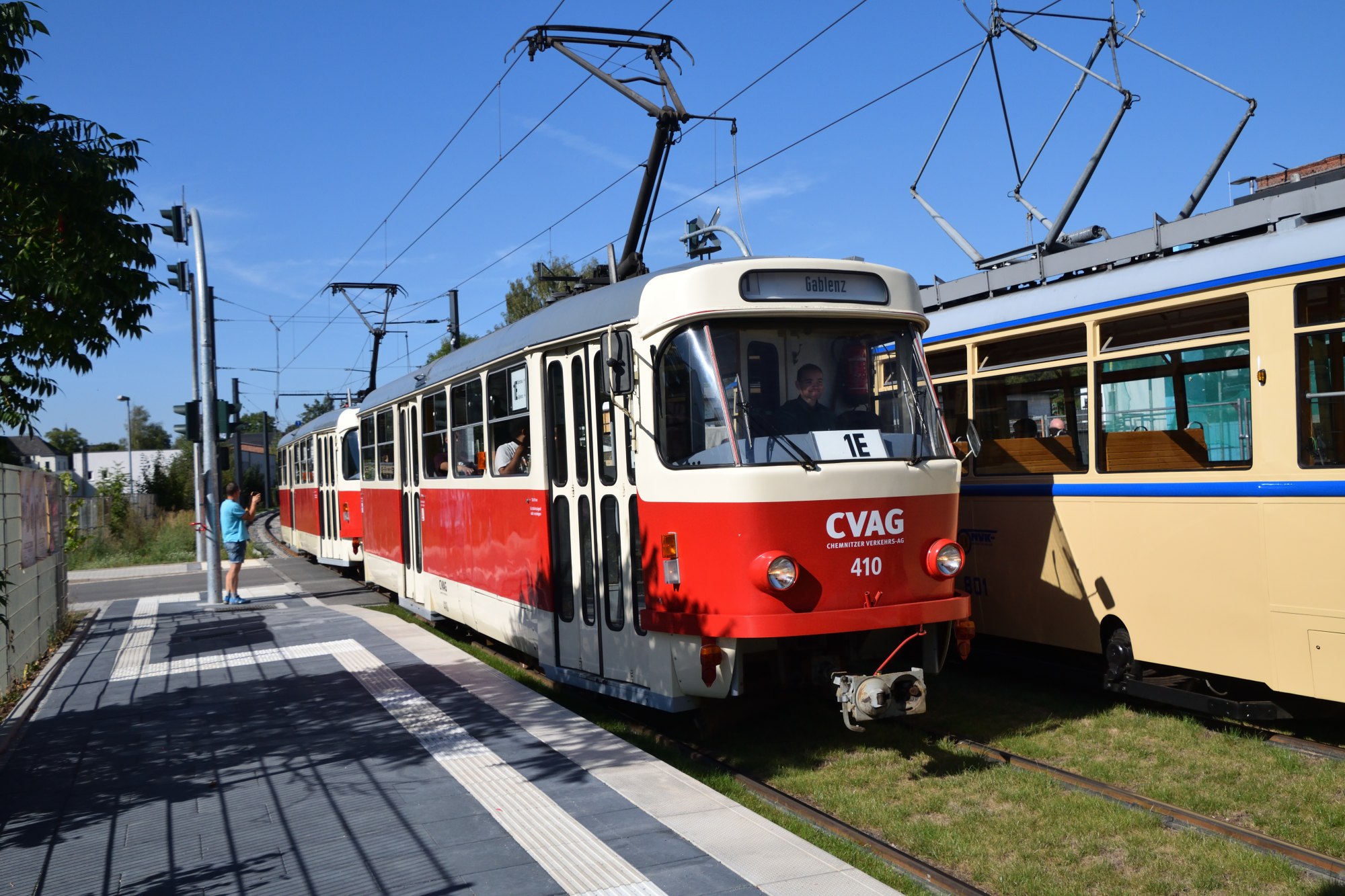 801, 409 + 410 am Feldschlößchen/Straßenbahnuseum Kappel