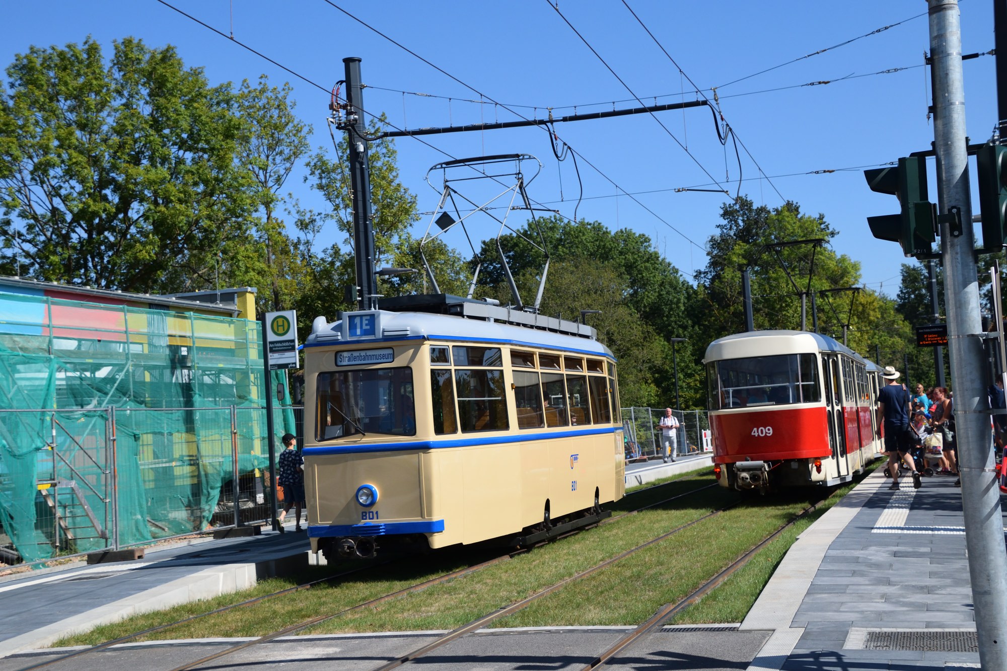 410 + 409 am Feldschlößchen/Straßenbahnuseum Kappel