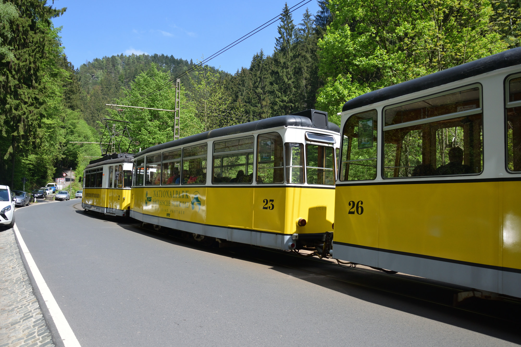 Im Linienverkehr werden 5 Triebwagen vom Typ Gotha T57 eingesetzt und dazu 4 Beiwagen vom Typ Gotha B2-62, 2 Beiwagen vom Typ Gotha B2-64 und ein Beiwagen B2D von ČKD Tatra.